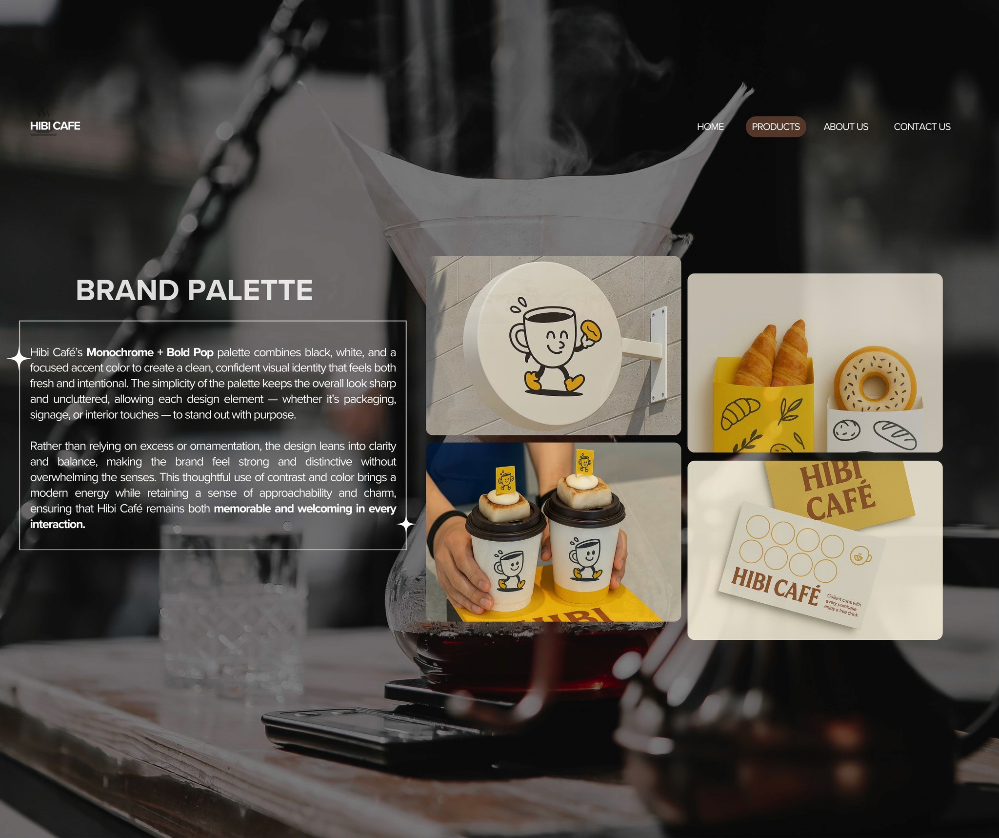 𝐇𝐢𝐛𝐢 𝐂𝐚𝐟é’𝐬 𝐛𝐫𝐚𝐧𝐝 𝐩𝐚𝐥𝐞𝐭𝐭𝐞 keeps it simple: bold black, clean white, and a sharp accent color that brings focus and energy. A balanced, modern look that’s clear, confident, and easy to recognize.