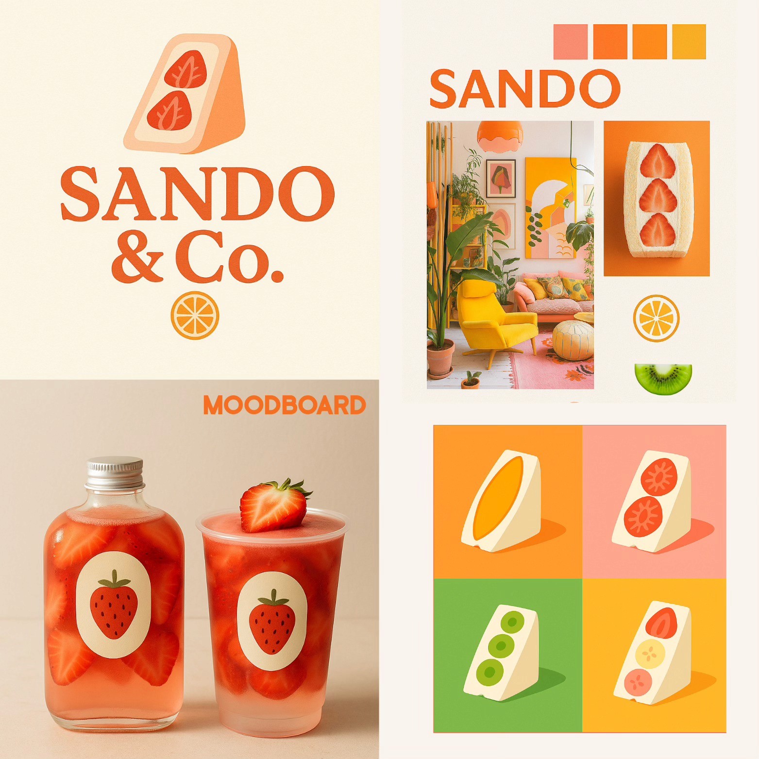 This brand began with a craving — not just for fruit sandwiches, but for clarity, charm, and design that feels like a bite of summer. When I created Sando & Co., I imagined a brand that’s playful, soft, and undeniably fresh. Not loud. Not trendy. Just clean joy, between two slices of minimalism. Fruit sandos are a Japanese treat that balance beauty and simplicity — just like good design should. So the idea was simple: "Design a brand that’s as snackable as the product itself."